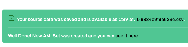 You will now see a message letting you know that 'Your source data was saved and is available as a CSV at linktotheAMIgenerated.csv