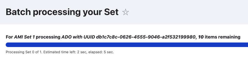 You will be returned to AMI sets page and see a brief confirmation message regarding the Enqueuing and Processing options you selected.