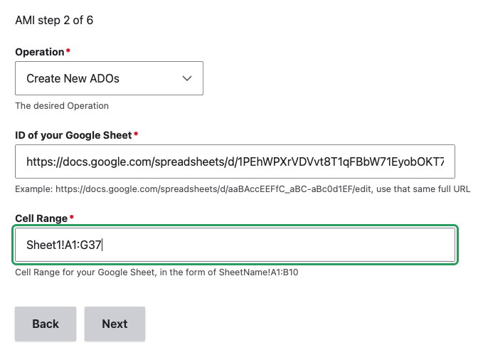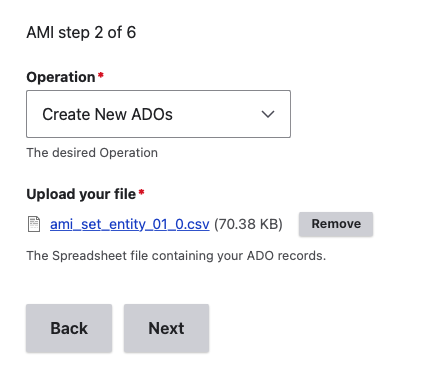 Select 'Create New ADOs' as the Operation you would like to perform.