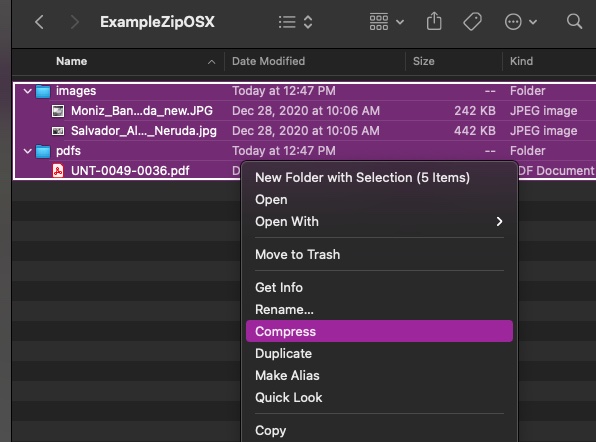 - Please note, when creating your ZIP file (in particular, within an OSX environment): only select the folders and files needed, not the top/enclosing folder they are in.