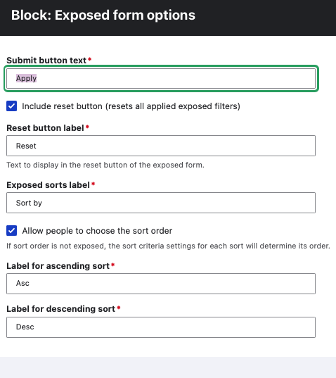 - Expose searched fields : leave unchecked