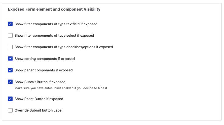 - Show filter components of type checkbox/options if exposed