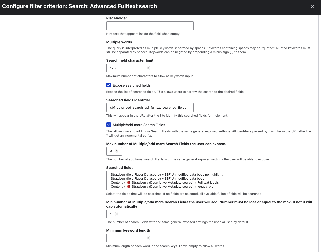 - The number of additional search Fields with the same general exposed settings the user will be able to expose.