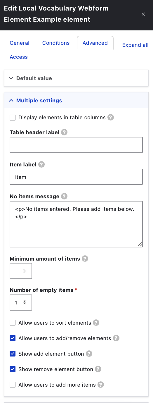 In the Edit tab that opens for your newly added element, you will need to review the following sections.