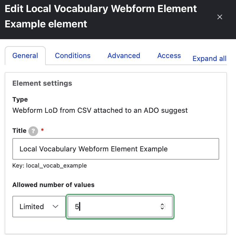 Begin typing a label found in your prepared CSV associated with the webform element.