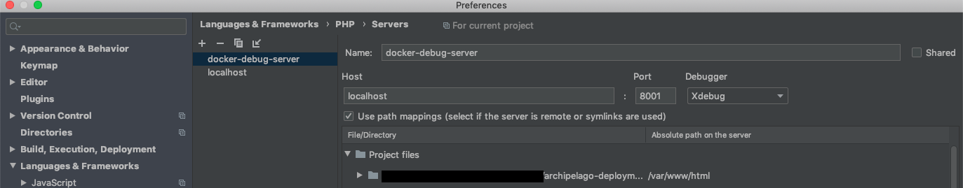 Preferences > Languages & Frameworks > PHP > Servers. We will create a new server here. Use these settings:- Name: