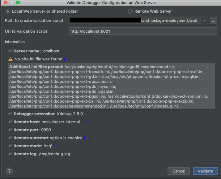 php.inifile, that is OK, our file has a different name in the container (xdebug.ini) and is still being read correctly.
