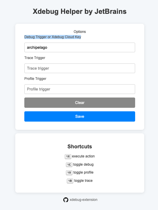 We have had success using the XDebug Helper by JetBrains extension in Chrome. Once you have the extension installed, right-click on the bug icon in the top right of your chrome browser window and select "Options" to configure the IDE key. Under "Debug Trigger or Xdebug Cloud Key" enter "archipelago"